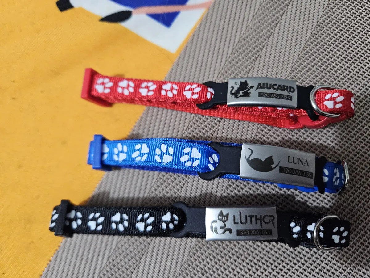 Completamente satisfecho. Me agradó que me dieran la posibilidad de agregar más de un número de contacto a cada placa. Las grabación láser es de buena calidad los collares muy bonitos.